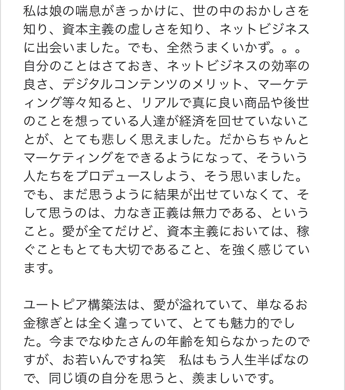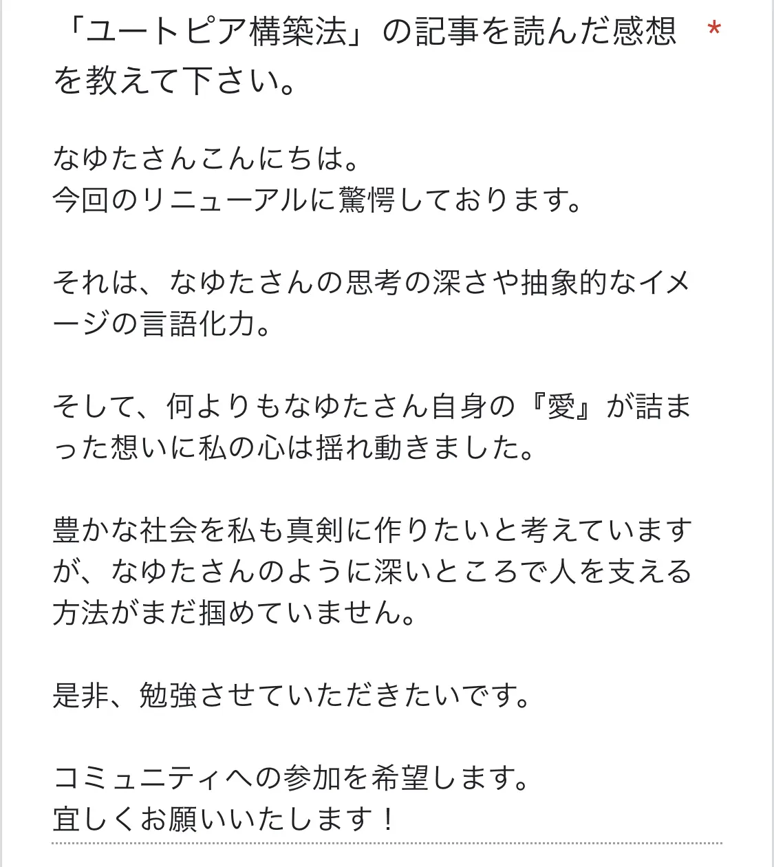あなたの心にも共鳴したものがあるのなら。ぜひ、ともにユートピアを目指して行けたらと思います。